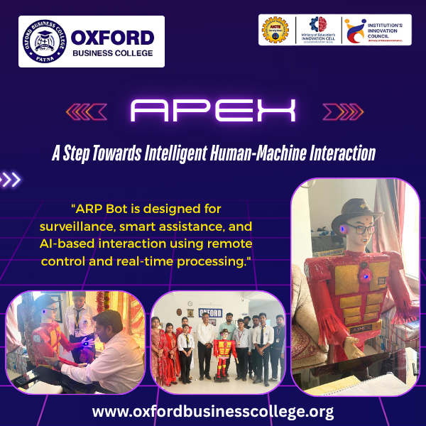 I am grateful to be a BCA student at Oxford Business College, Patna. The college provides excellent faculty, modern facilities, and a supportive learning environment. The practical exposure, industry-oriented teaching, and extracurricular activities have helped in my overall development. I highly recommend it to aspiring students.